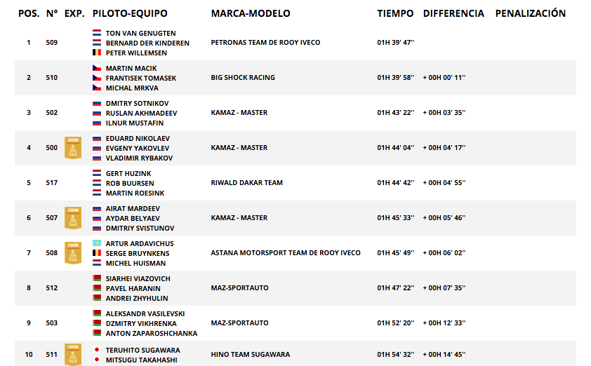 Eduard Nikolaev no ganó hoy pero le bastó un cuarto lugar para adjudicarse el título. A bordo de Kamaz, el ruso luchó hasta el final, pero la carga le quedó más ligera cuando Federico Villagra se vio obligado a retirarse de la competencia por falla mecánica irreparable.