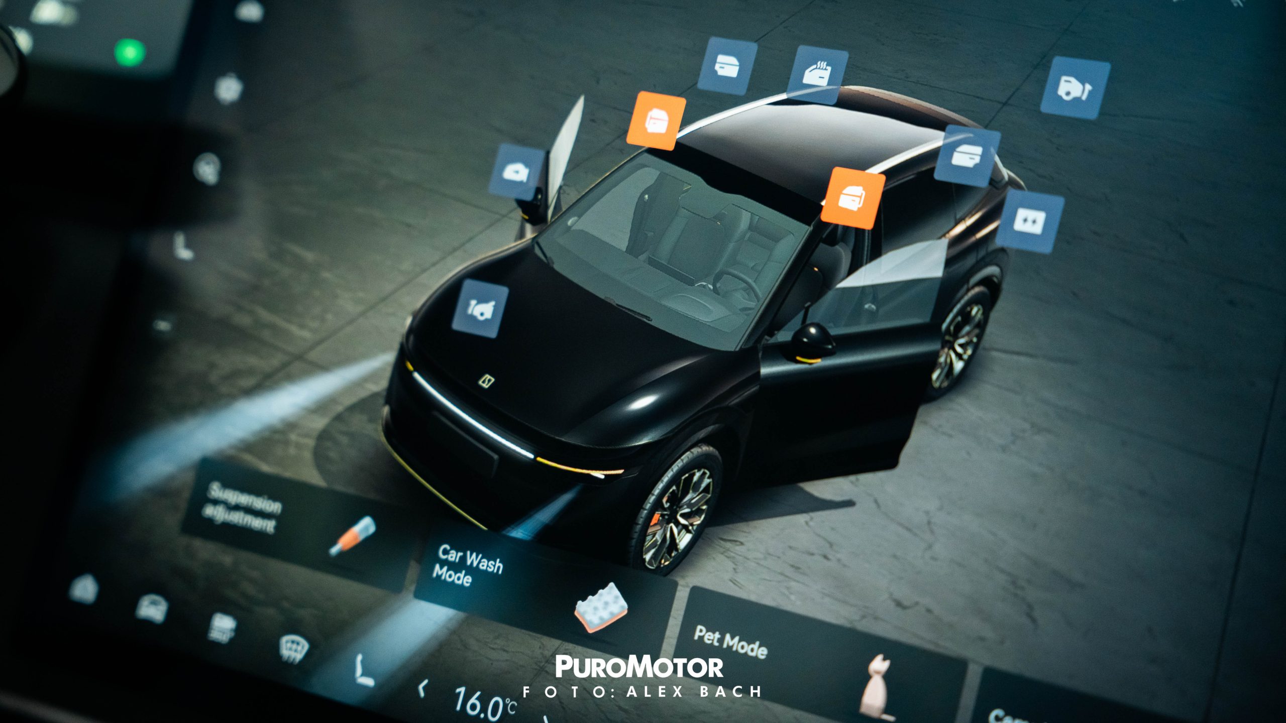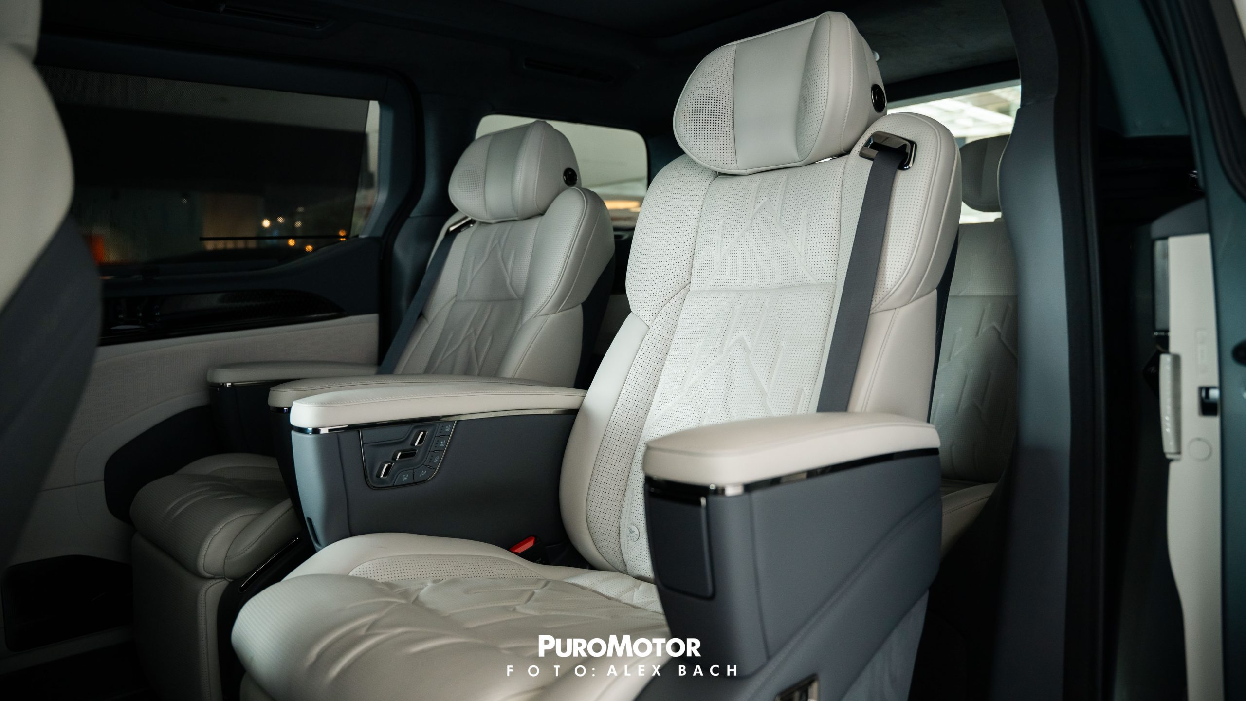 Está equipado con asientos Sofaro tapizados en cuero NAPPA de alta calidad y asientos modo lounge Earnes en la segunda fila, todos con masajeador, ventilación y calefacción, sistema de iluminación inteligente, techo panorámico, cámara 360, aire acondicionado de triple zona, puerta trasera eléctrica, head up display de 34.95”, pantalla táctil OLED de 15.05” (frontal) y pantalla OLED de 17” 3K (de techo), sonido envolvente premium con 30 parlantes.