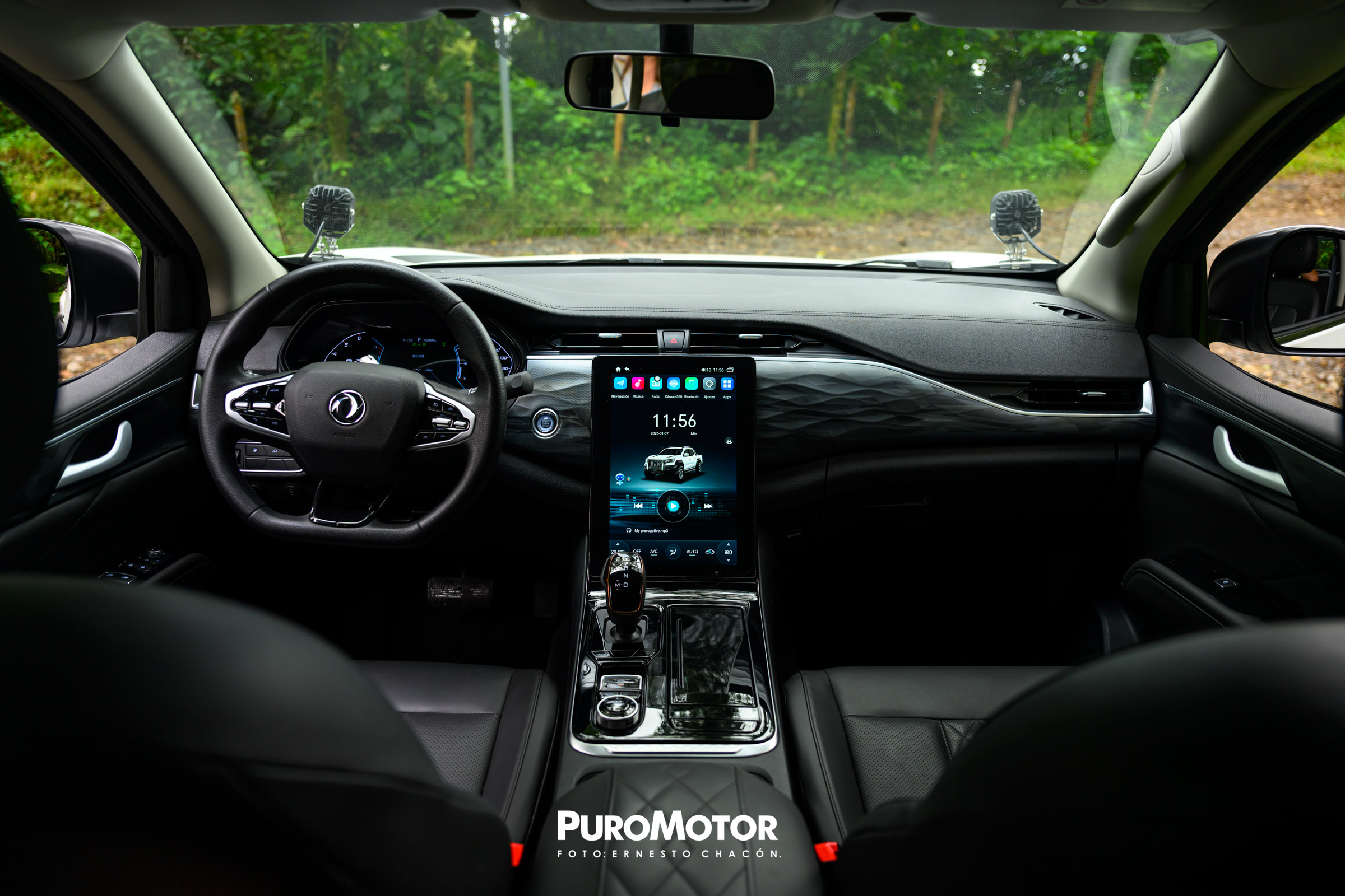 Buscando ser un vehículo apropiado para la aventura, pero también lo más cómodo posible para el día a día, el Dongfeng Rich 7 Tiger tiene detalles interesantes en el interior, por ejemplo, los asientos delanteros con ajuste eléctrico, tapicería en eco cuero, materiales suaves al tacto en todo el tablero y las puertas, llave inteligente, botón de arranque y parabrisas delantero a prueba de rayos UV y calor.
