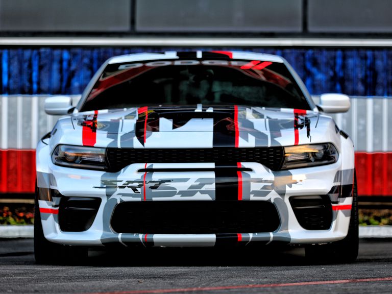 El jefe de diseño de FCA, Mark Trostle, compartió algunas imágenes del concepto Charger Widebody en Instagram. Lleva una envoltura gráfica en rojo, negro y blanco pero, por lo demás, parece un modelo completamente listo para producción.