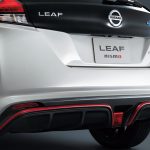 El Nissan LEAF NISMO cuenta con las características aletas dobles en capas que distinguen a la gama de vehículos urbanos NISMO, mejorando la carga aerodinámica sin comprometer el coeficiente de arrastre.