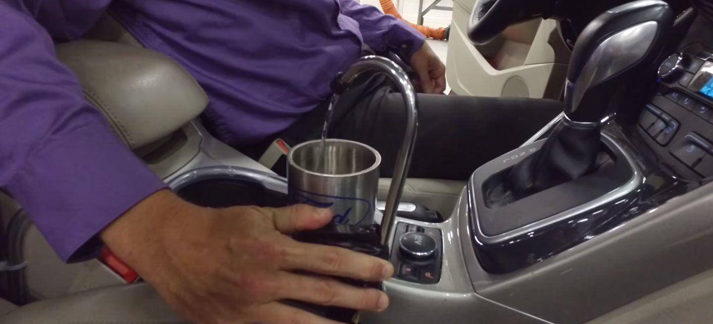 Ha sido idea de Doug Martin, un ingeniero de motores de Ford. Ha instalado un depósito adicional junto al condensador del aire acondicionado, y mediante una simple tubería, el agua es trasladada a un pequeño grifo, situado junto a los huecos portabebidas de la consola central. Antes de acabar en un vaso, el agua pasa por un filtro de 0,1 micras, que elimina contaminantes o partículas en suspensión. El sistema permite generar hasta dos litros de agua a la hora, en función de la humedad del aire.