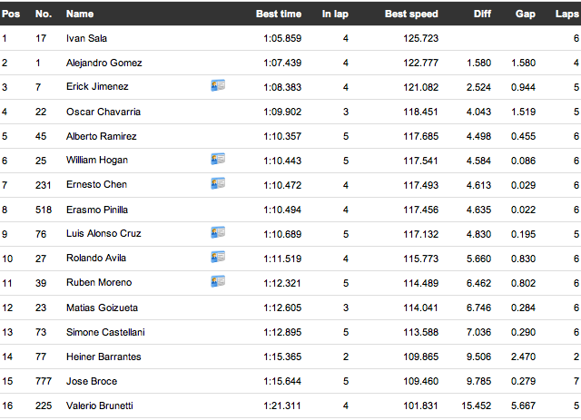 La diferencia entre ambos fue de 1.580 segundos, pero Gómez confía en que con mas vueltas en pista y algunos ajustes en la suspensión pueda dar la pelea en la punta.
