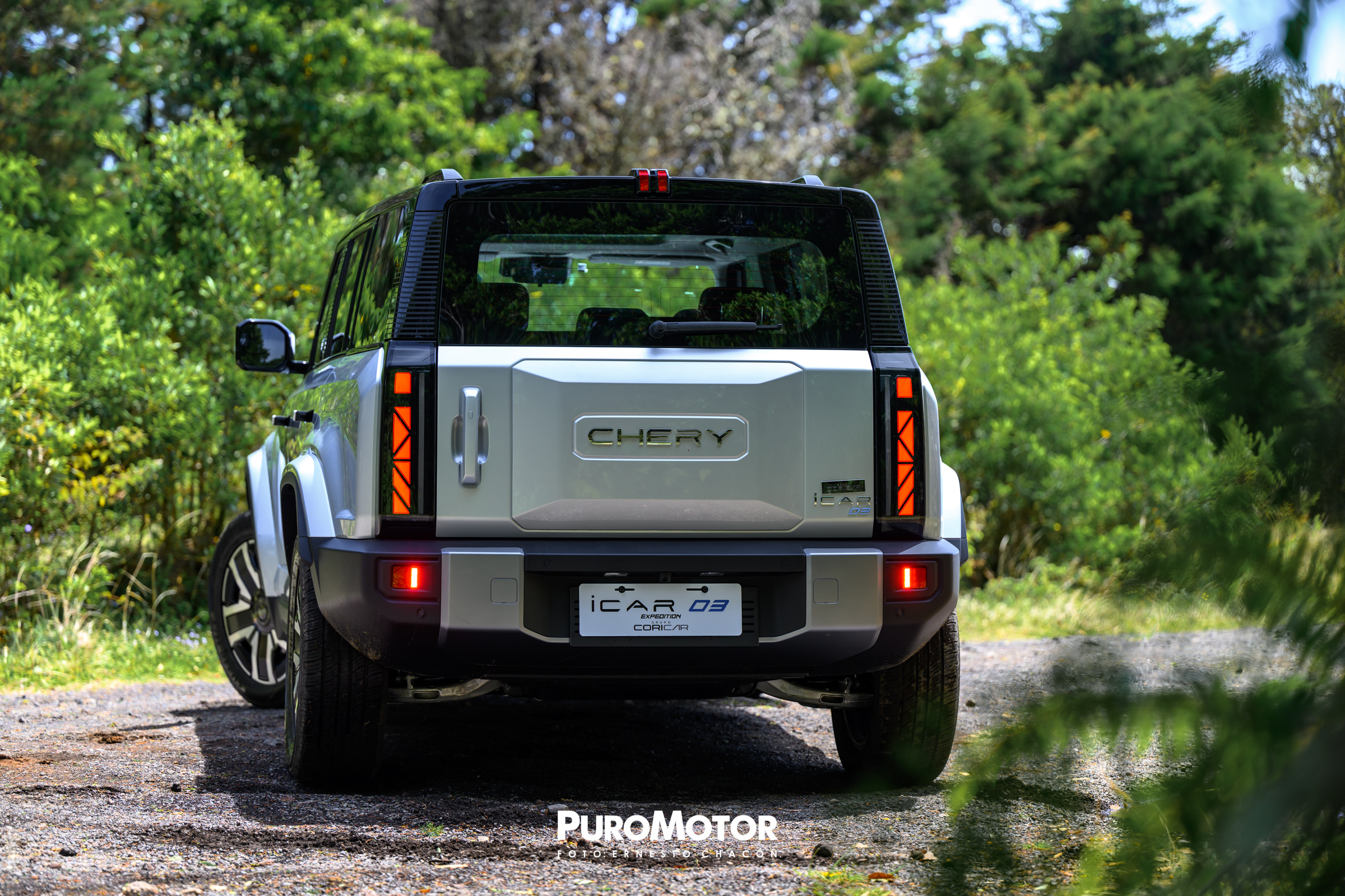 ¿Pero, qué trae diferente este iCAR 03 Expedition? Si bien, mantiene su forma robusta, de líneas cuadradas características del modelo, si hay elementos novedosos, como el nombre Chery que aparece con letras grandes adelante y atrás, presenta unos apliques de color en la defensa delantera y trasera, y además, no tiene el maletero trasero externo, sino que es un diseño más lineal que le da sobriedad.