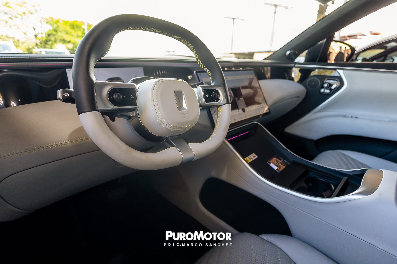 El habitáculo está diseñado para ofrecer una experiencia tecnológica envolvente, con tres pantallas digitales (instrumentos, pantalla central y pantalla para copiloto), conectividad 4G, WiFi, cargador inalámbrico y sistema de audio Meridian con 25 parlantes.